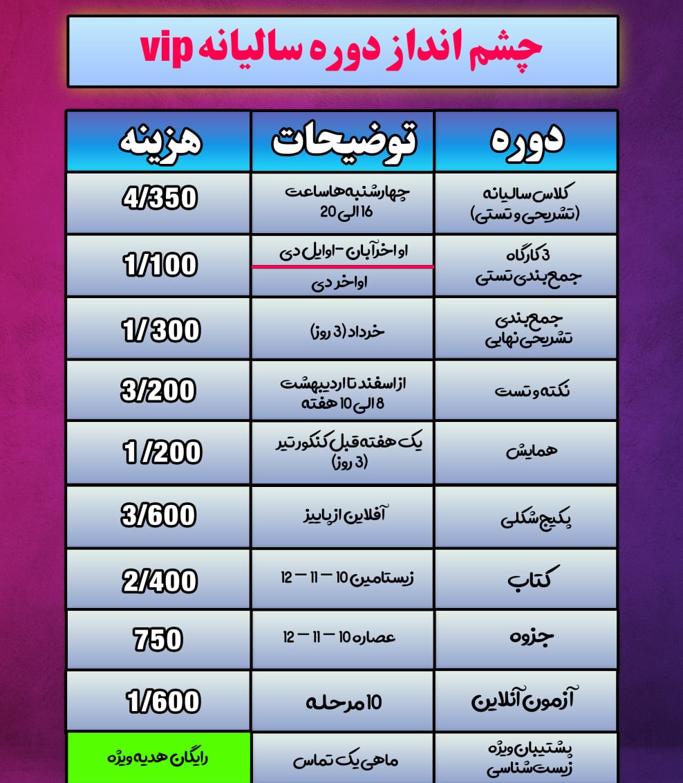 تمامی چیزهایی که در جدول زیر قید شدهاند با تهیه پکیج در دسترس شما خواهند بود