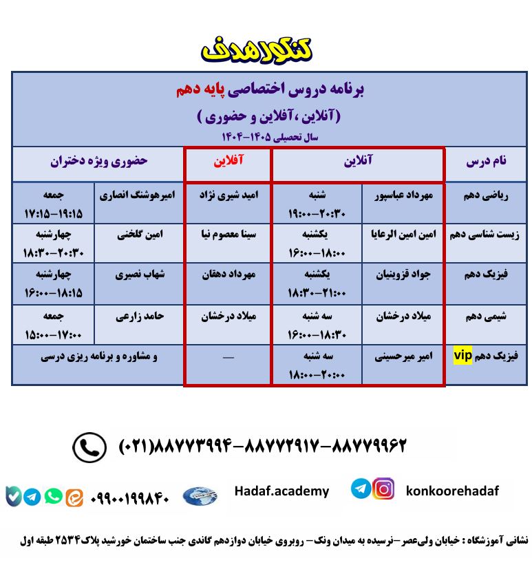 دهم آنلاین و آفلاین وحضوری دختران